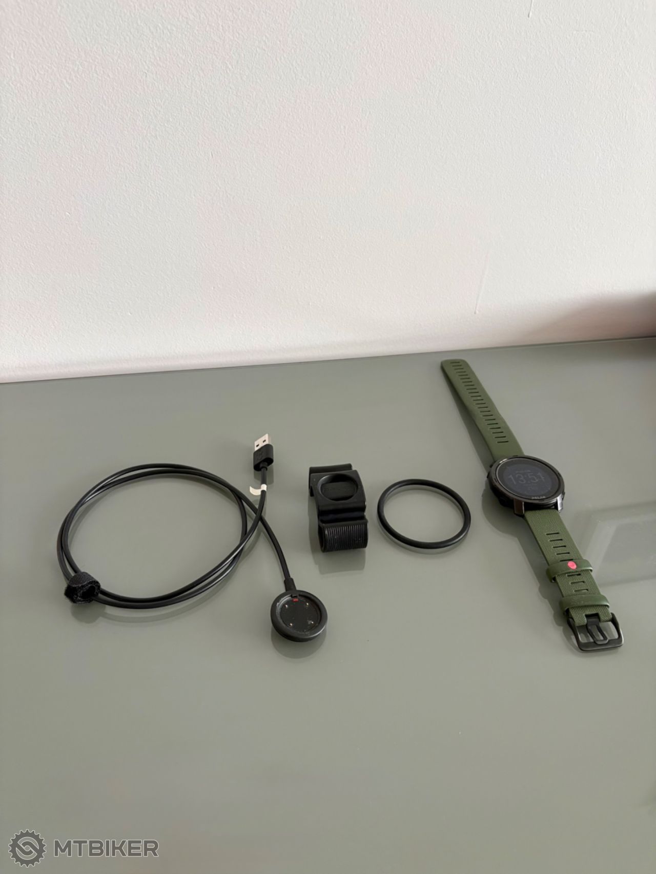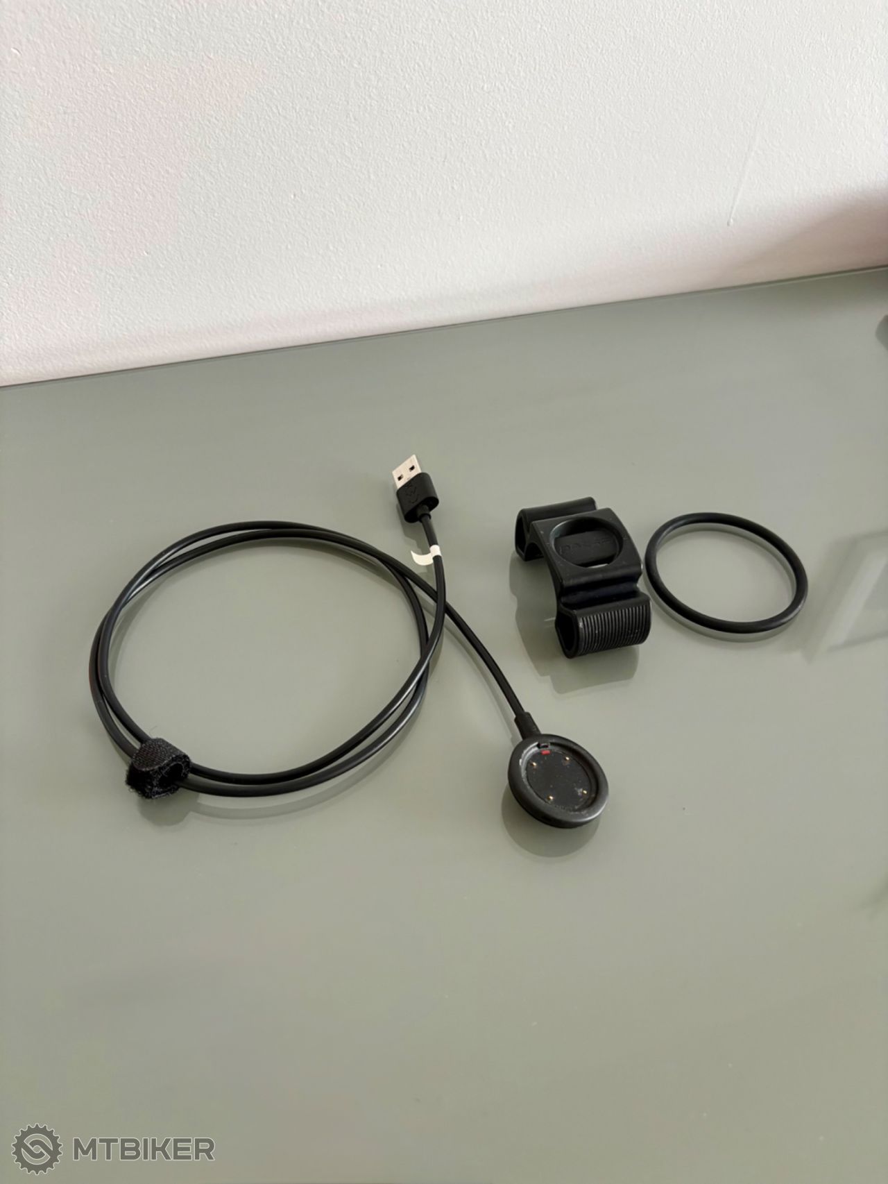 Súčasťou je nabíjací kábel a držiak na hodinky na riadidlá bicykla.