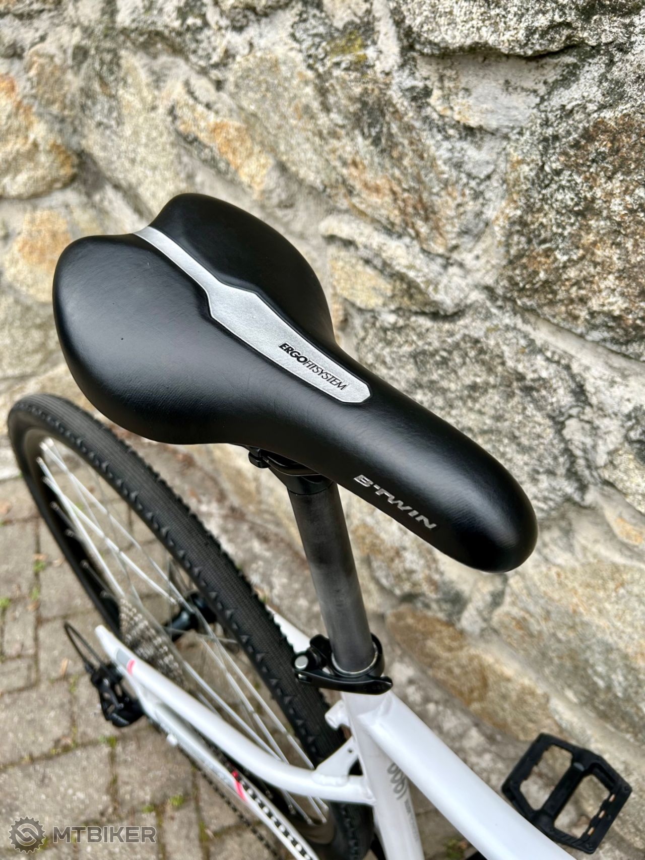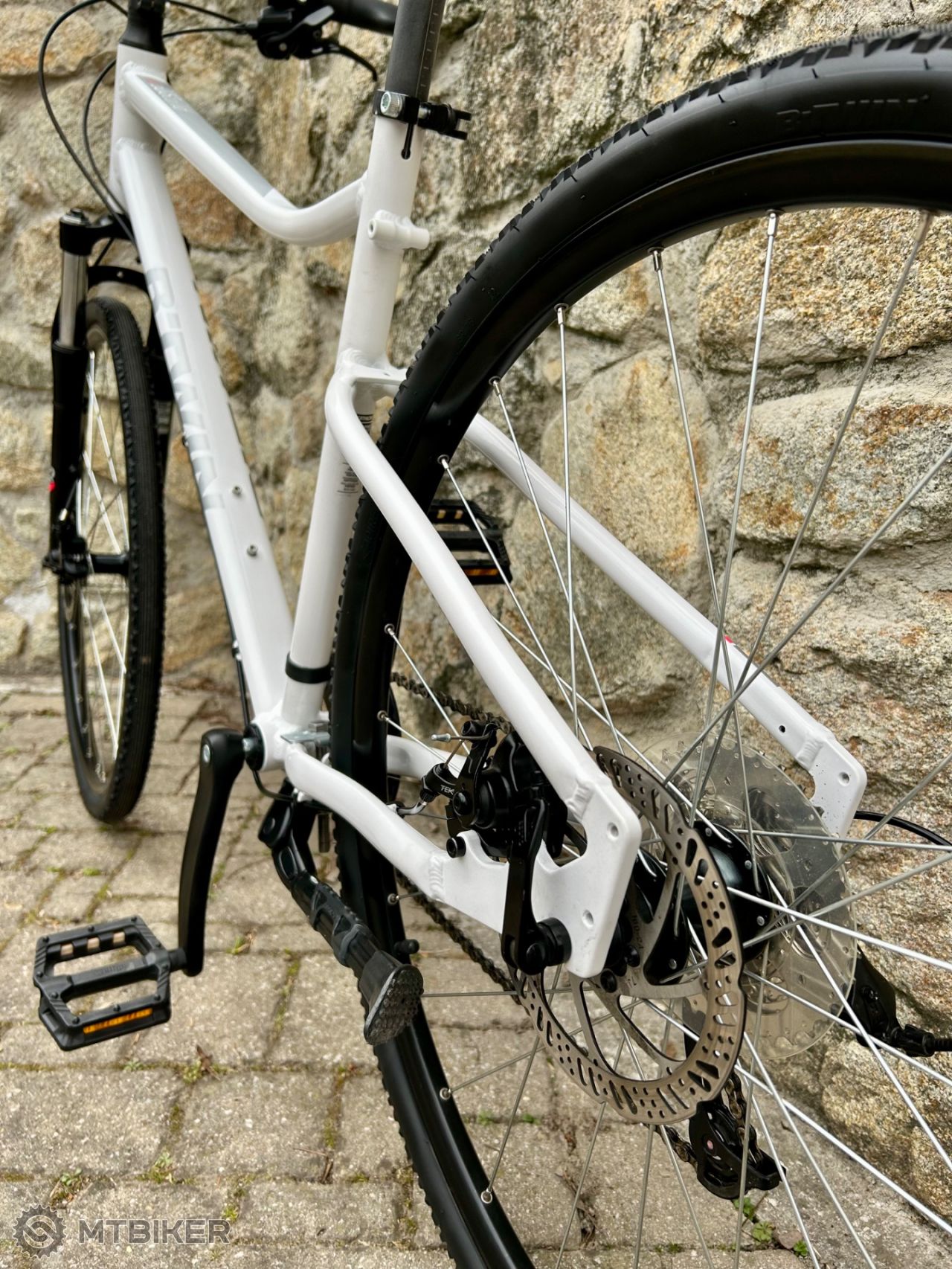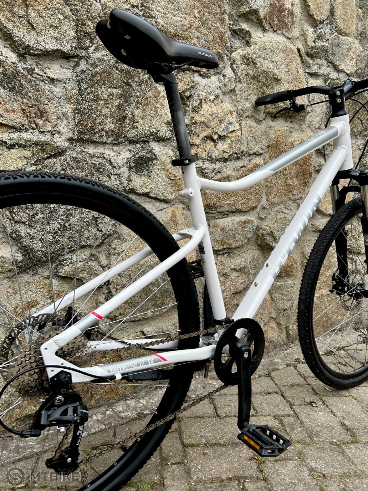 Pekný deň, na predaj obľúbený dámsky bicykel BTWIN Riverside 500 s kotúčovými brzdami v zachovalom a plnefunkčnom stave. Málo používaný. Rýchle radenie MicroShift 1x9. Má odpruženú prednú vidlicu Riding Comfort, mechanické kotúčové brzdy Tektro, pohodlné sedadlo ErgoFit a odľahčený hliníkový rám s dobrou geometriou pre pohodlné nasadanie/zosadanie z bicykla.