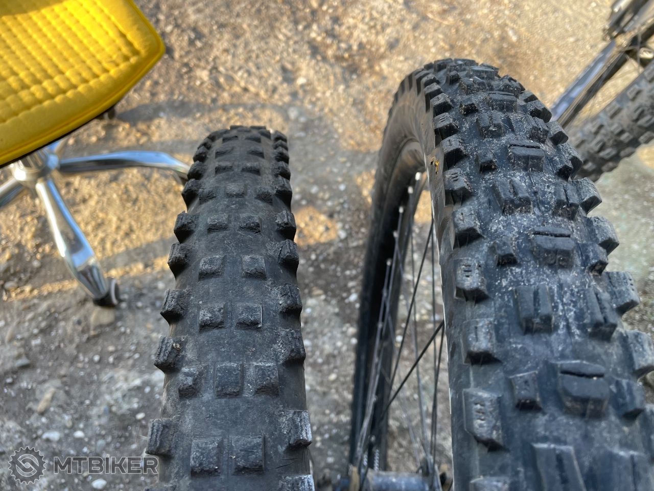 Plaste: predný Assegai 29x2,5 Exo (90%), zadný Magic Mary radial gravity soft 27,5x2,5 (50%)
