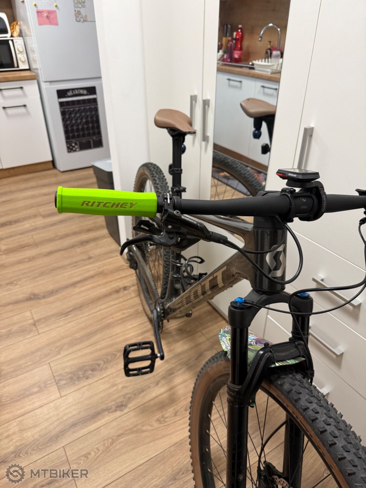 Tieto gripy som objednávala jednak koli farbe a ergonomii. Su trosku širšie, skor pre chlapské ruky. Inak celkom pohodlné zatiaľ testované len na pár km, budem si musieť upriaviť natočenie riaditok kôli nim. Musela som si na ne zvyknúť kôli mäkkosti sa mi zo začiatku išlo zvláštne. Trochu ma nepríjemne prekvapilo, že sa mi po 20km nepekne ofarbili z Ale rukavic 😳 tak neviem či to je rukavicami alebo riaditkami 🤷🏻♀️